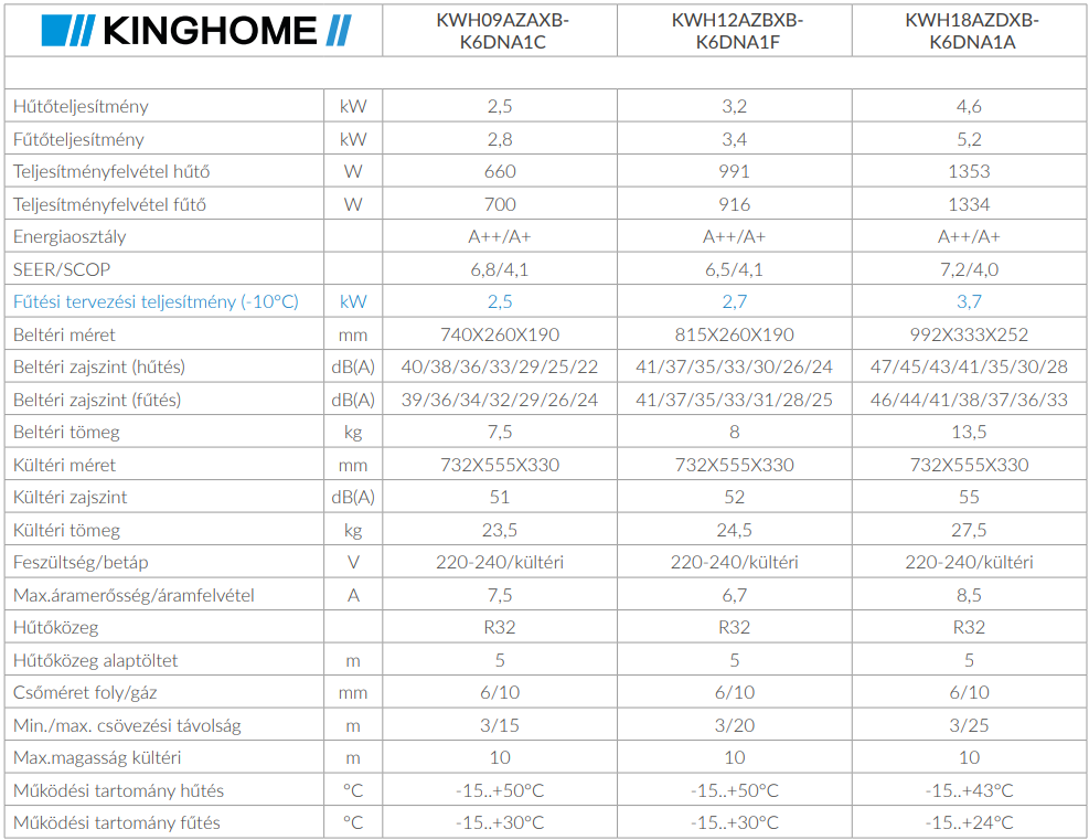 A Kinghome KWH12AZBXB-K6DNA1F Primor Inverteres Split klíma fontos tulajdonságai:
