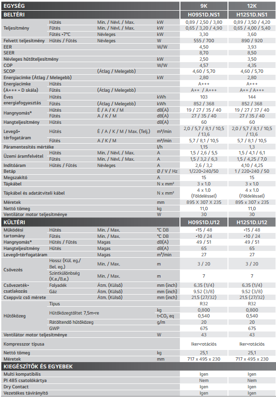 • Hűtő teljesítmény : 3,5 kW