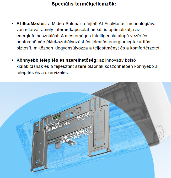 A Midea LUN-18-SP Solunar Inverteres Split klíma fontos tulajdonságai: